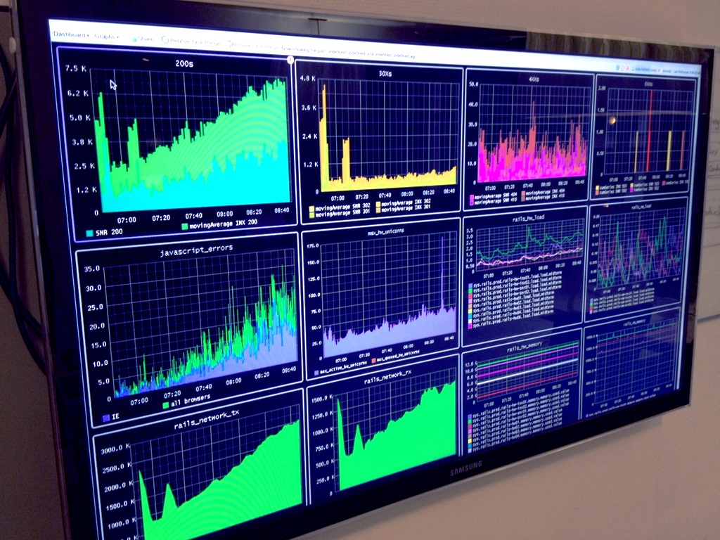With our front-end load balancer wired into Graphite (using Python), we were able to monitor response codes on an application-level basis, and quickly narrow in on problems. We installed several TVs and monitors around the office to monitor various things.