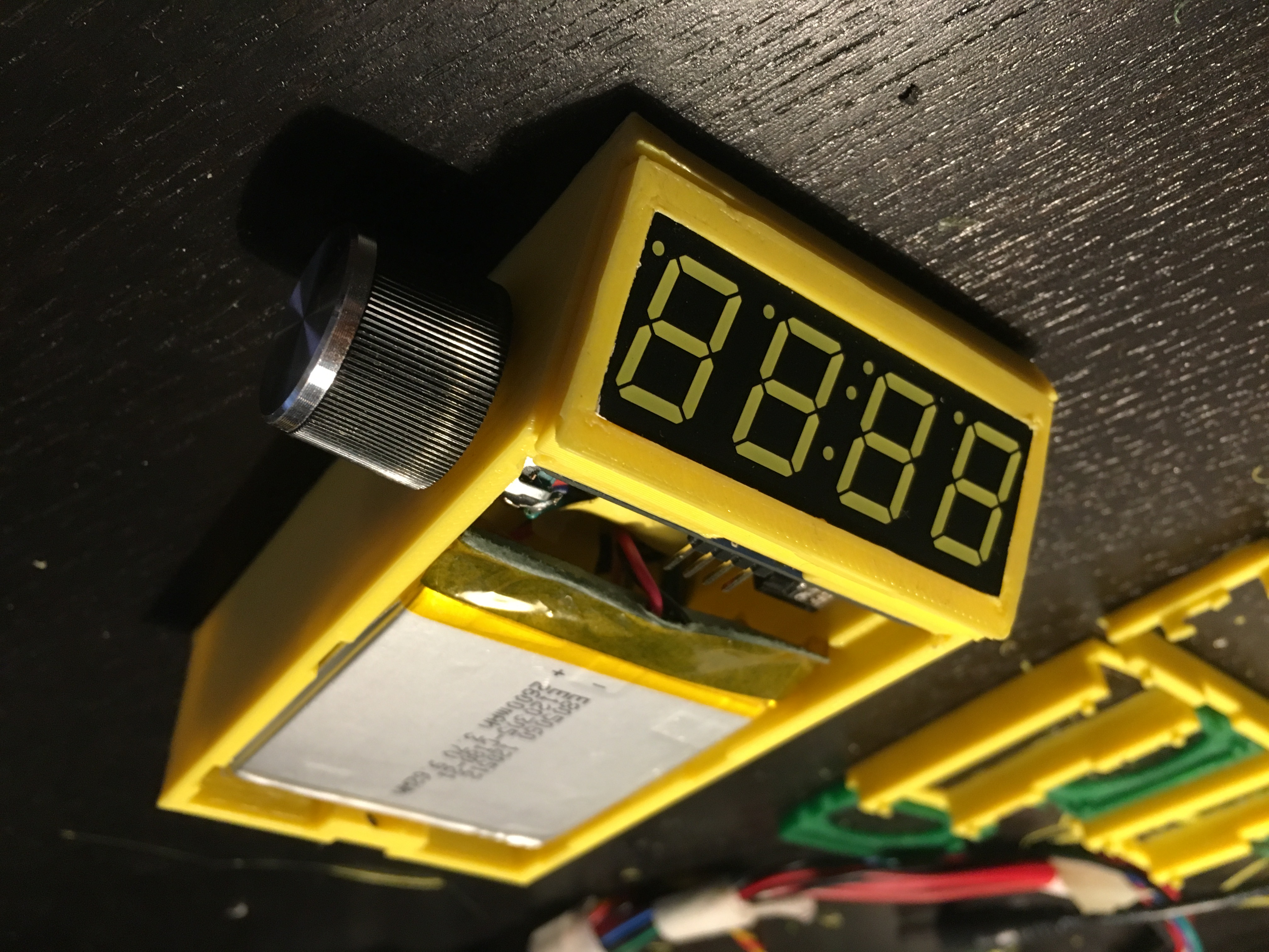 A battery-powered alarm clock I designed with a knob to adjust the time.