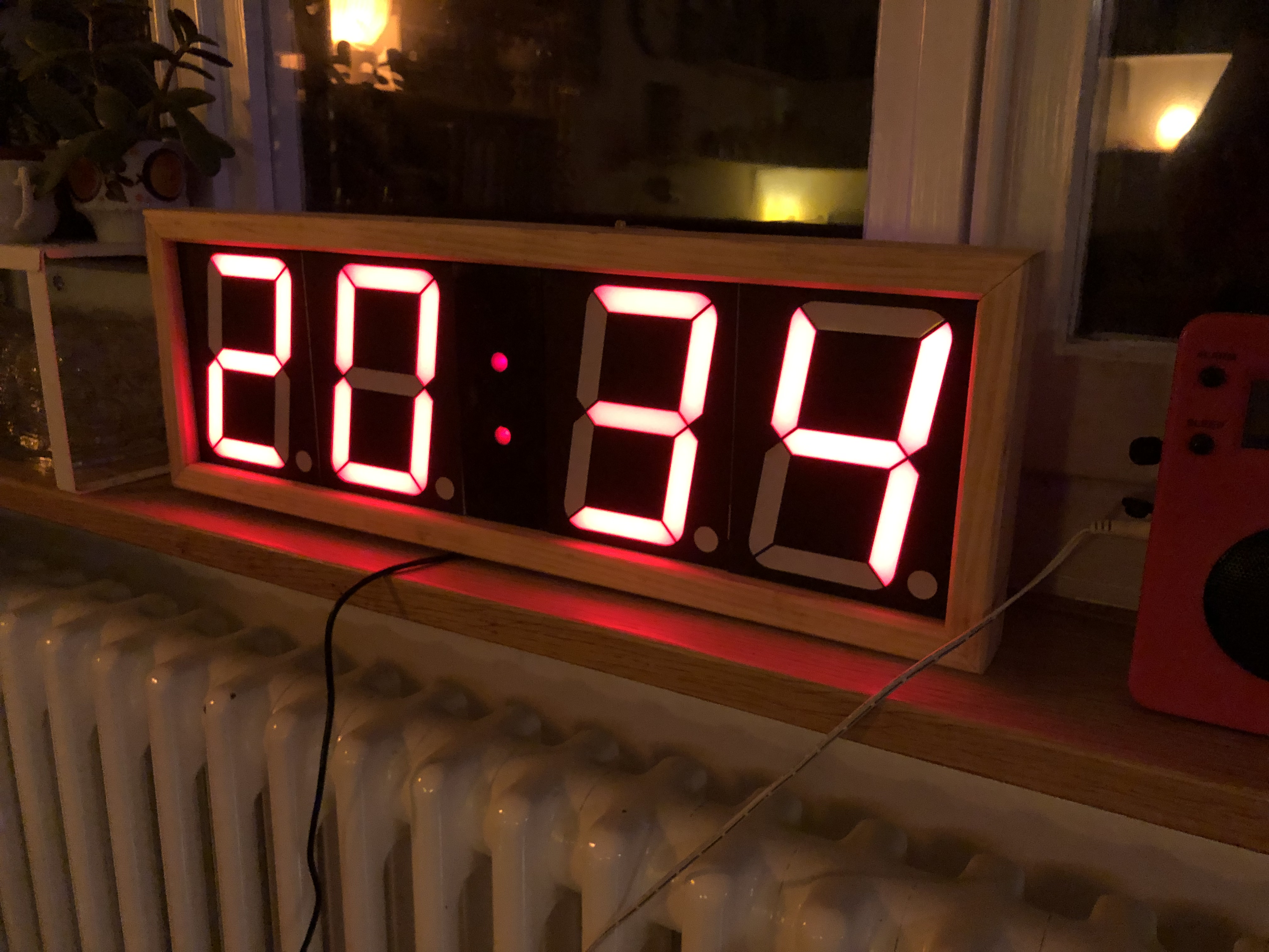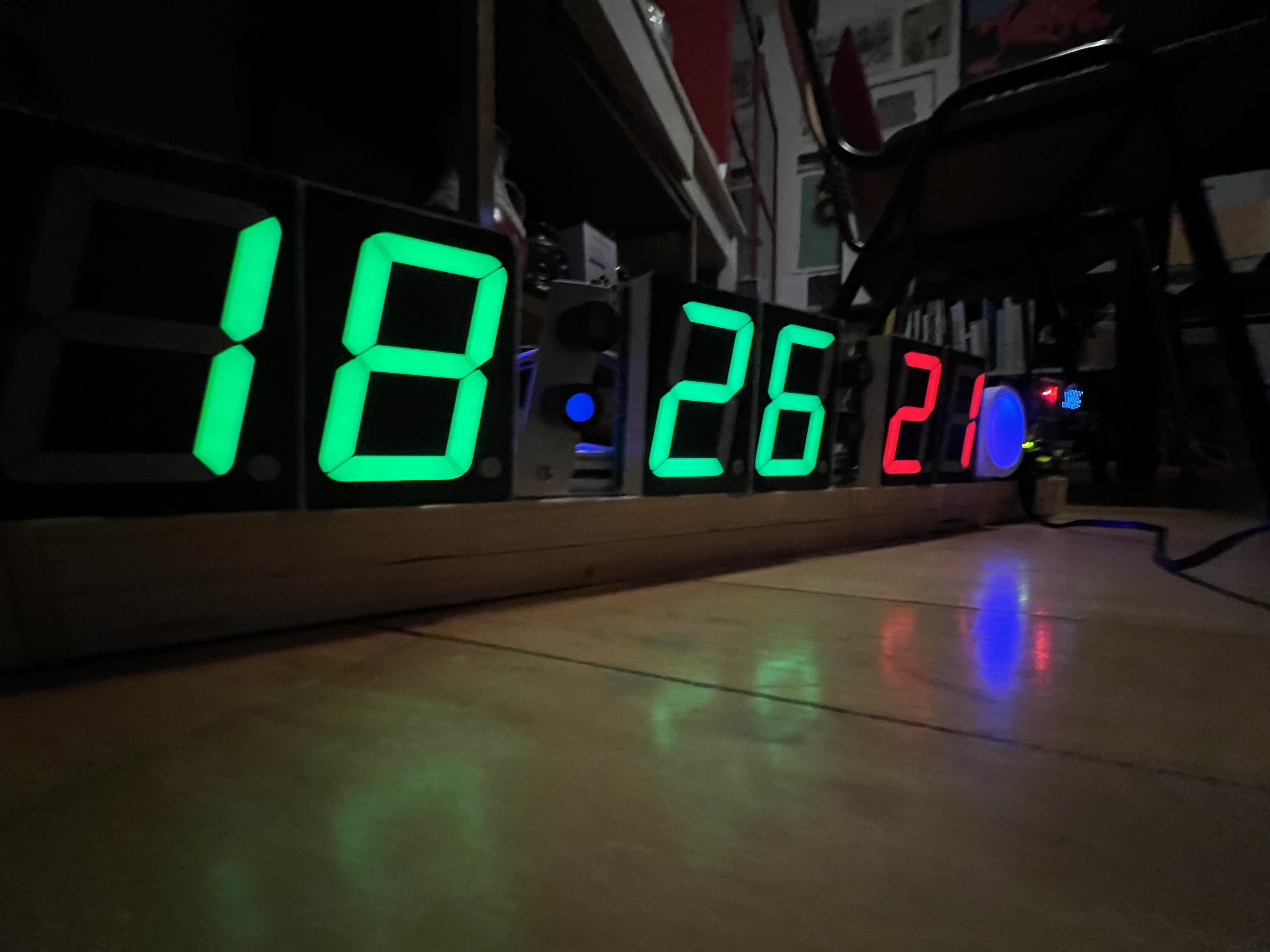 ESP32-based “cyberclock”, more details at https://github.com/somebox/esp32-cyberclock
