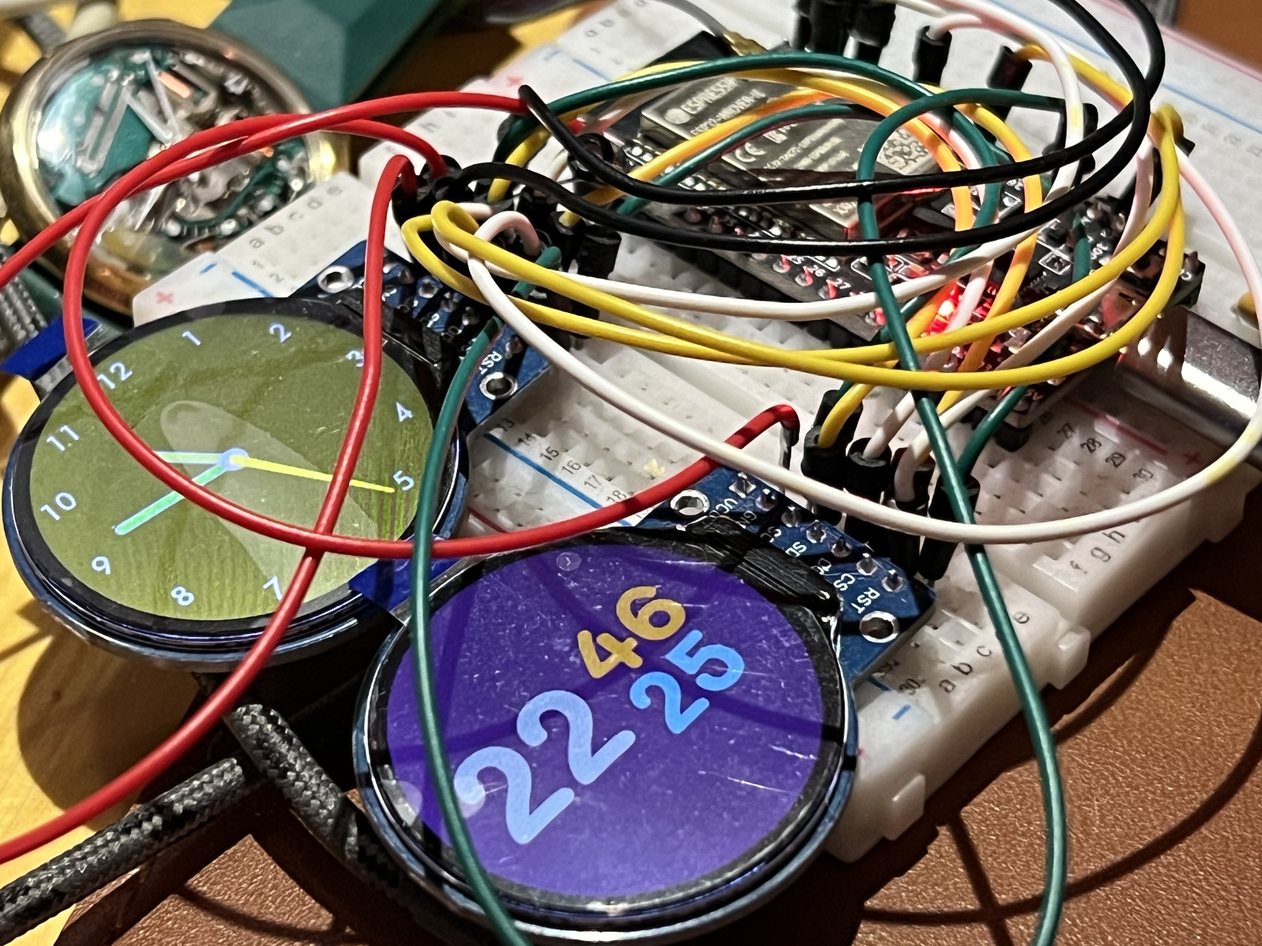 Experiments using round TFT watch displays, and controlling several at the same time.