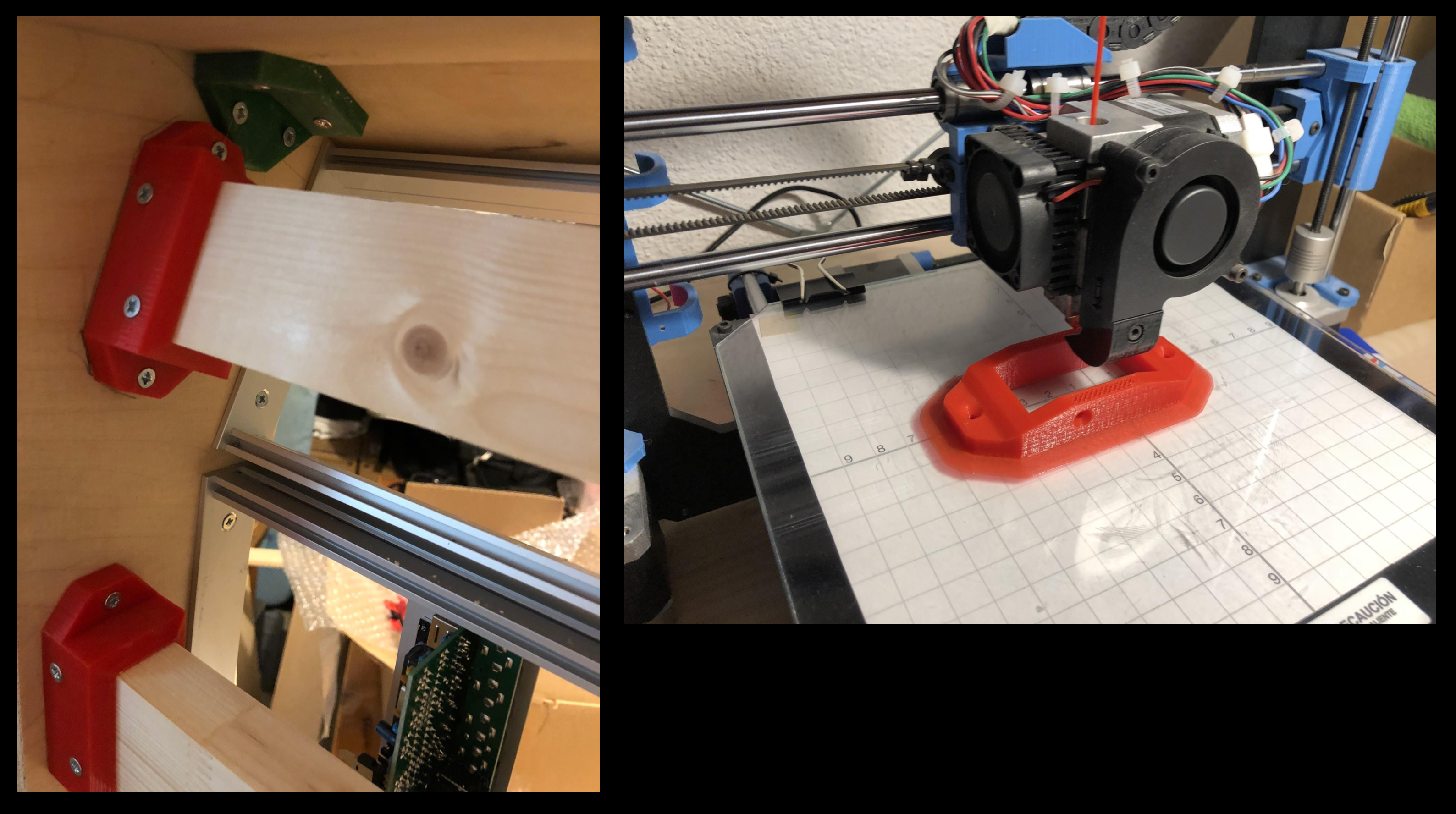 I really didn't want the screws to be visible, and I wanted some "play" to align things. So I printed some custom brackets using my 3D printer.