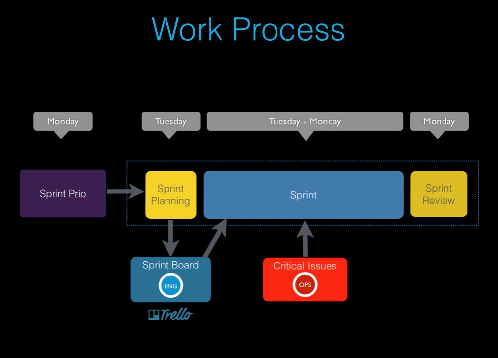 We needed a flexible process for engineering that was compatible with the pace of change at local.ch. As the web engineering team, we had to answer to many stakeholders within the company - marketing, sales, customer support, products. I adopted an "agency model", where we acted as an internal web shop, and the company stakeholders were our clients. Clients worked directly with engineers on features, and tasks were prioritized and organized into weekly sprints. Our team often deploy several times a week!