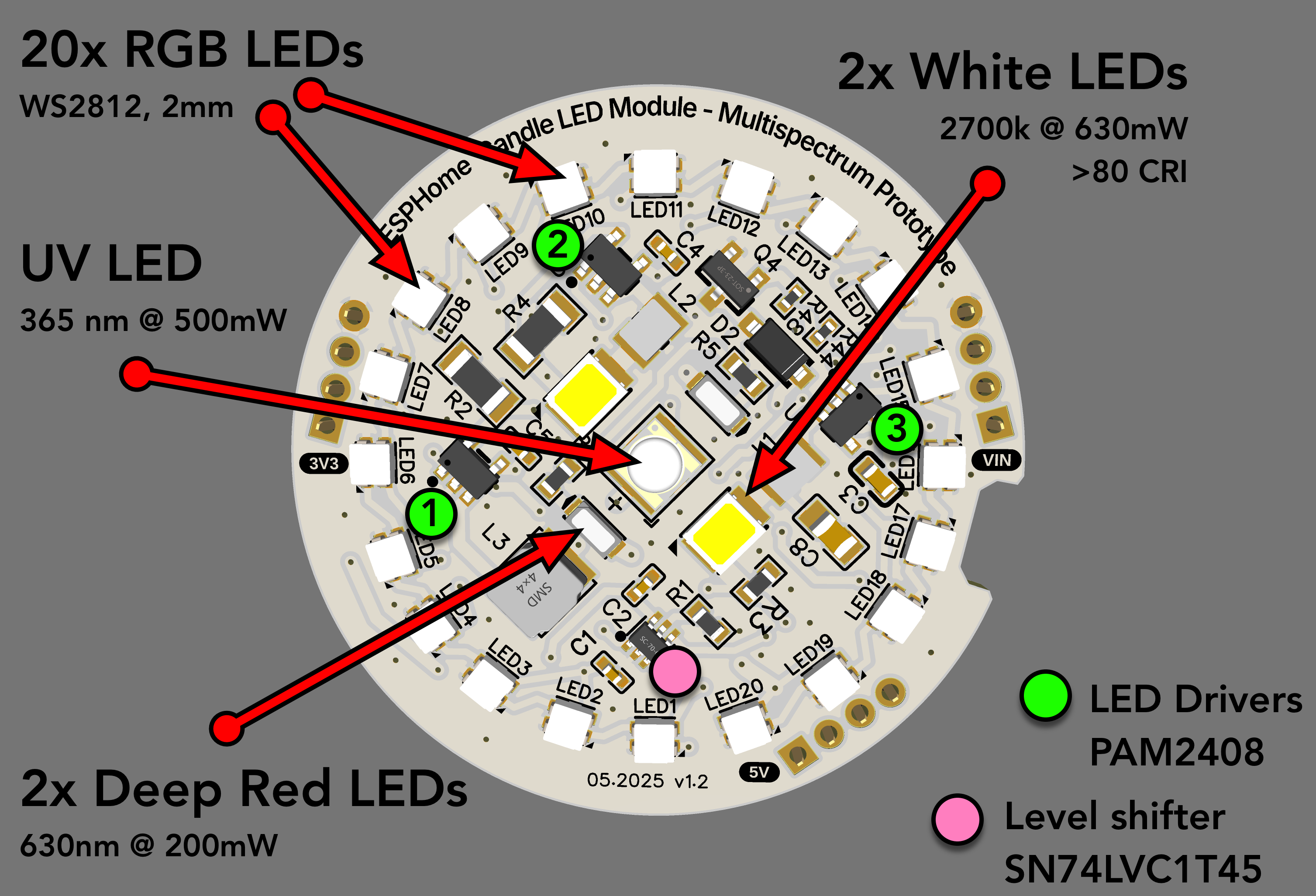 At its core, So Cherzli is a 38.6 mm round, USB‑C powered smart candle featuring warm‑white LEDs, deep‑red accents, UV LEDs, and an entire ring of individually addressable RGB LEDs — exactly as described in its open‑source reference implementation on GitHub here. Thanks to full Home Assistant integration via ESPHome, you can automate every detail: flicker intensity, RGB animations, UV accents, brightness, scenes, and even advanced effects like rainbow, twinkle, and realistic candle flame simulation. If it lights up, you can script it.